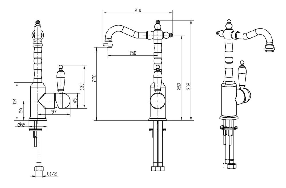 Смеситель Boheme Tradizionale 252 Nero для раковины, высокий, золото