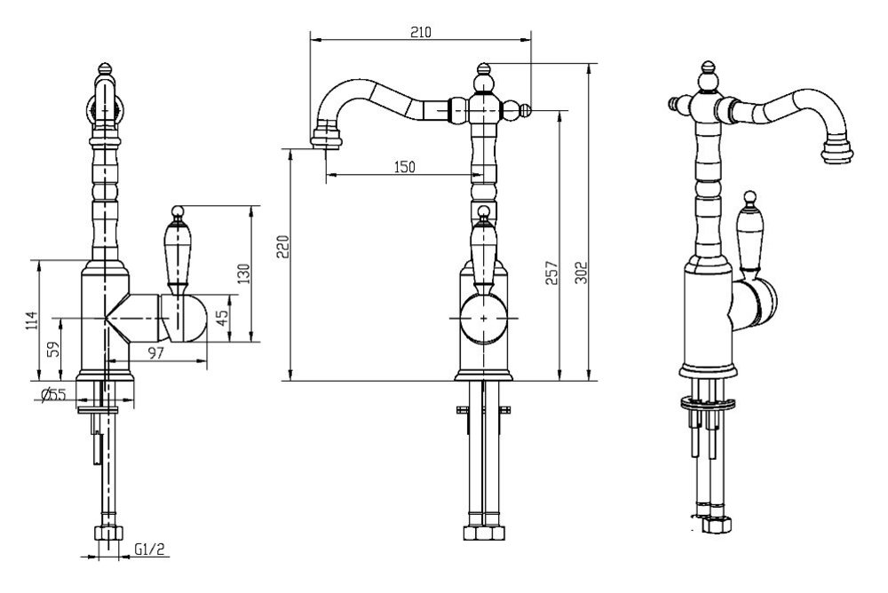 Смеситель Boheme Tradizionale 282 Oro для раковины высокий, золото