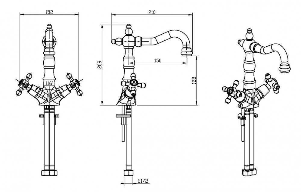 Смеситель Boheme Tradizionale 292 Oro для раковины, золото