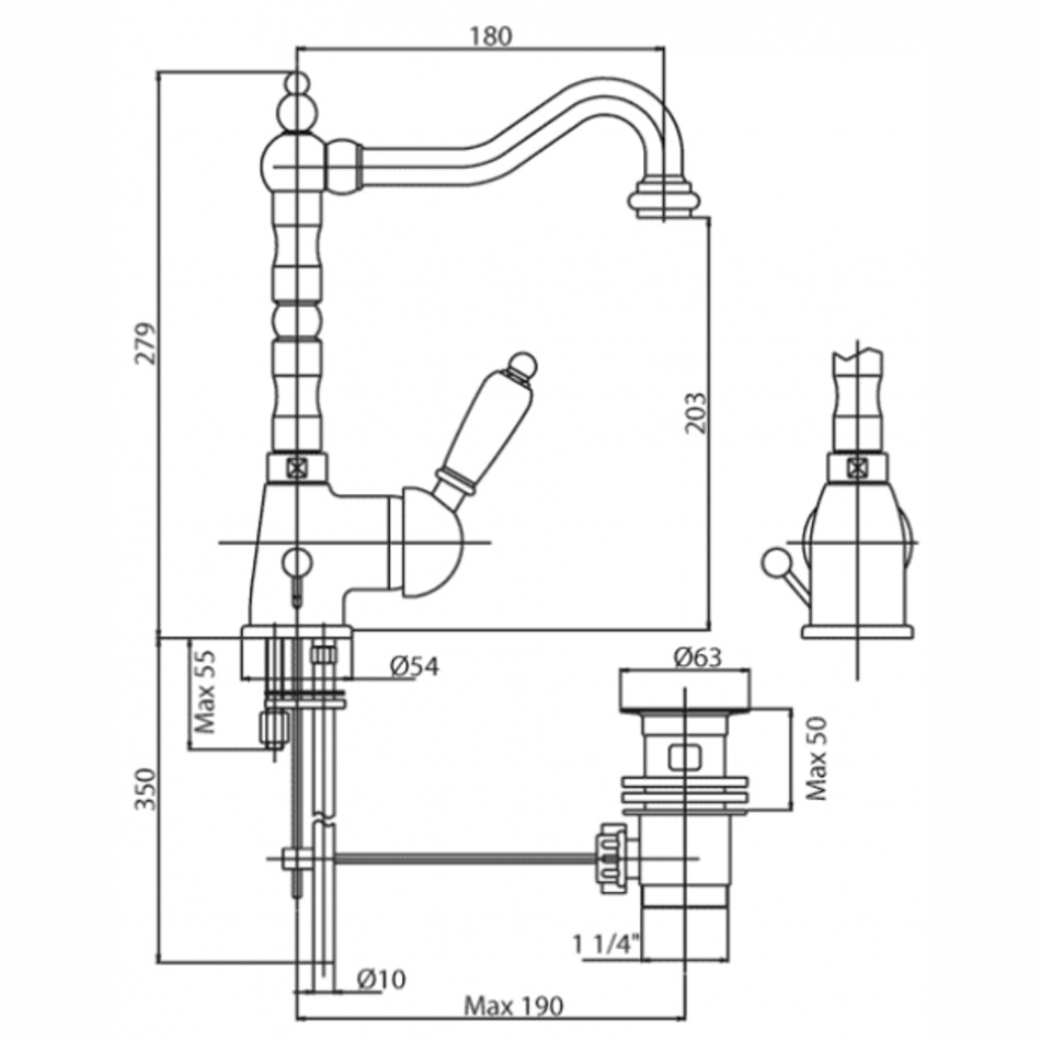 Смеситель Cezares ELITE-LSM2-02-Bi для раковины, бронза, ручка белая