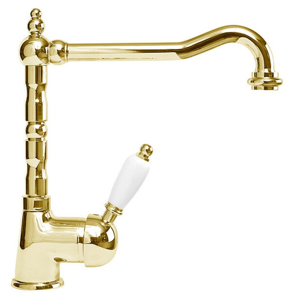 Смеситель Cezares ELITE-LSM2-03/24-Bi для раковины, золото, ручка белая