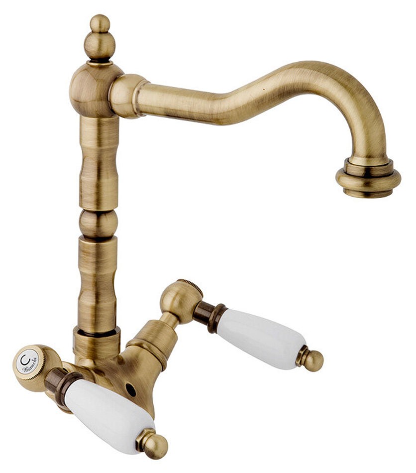 Смеситель Cezares FIRST-LS2-02-Bi для раковины, бронза, ручки белые