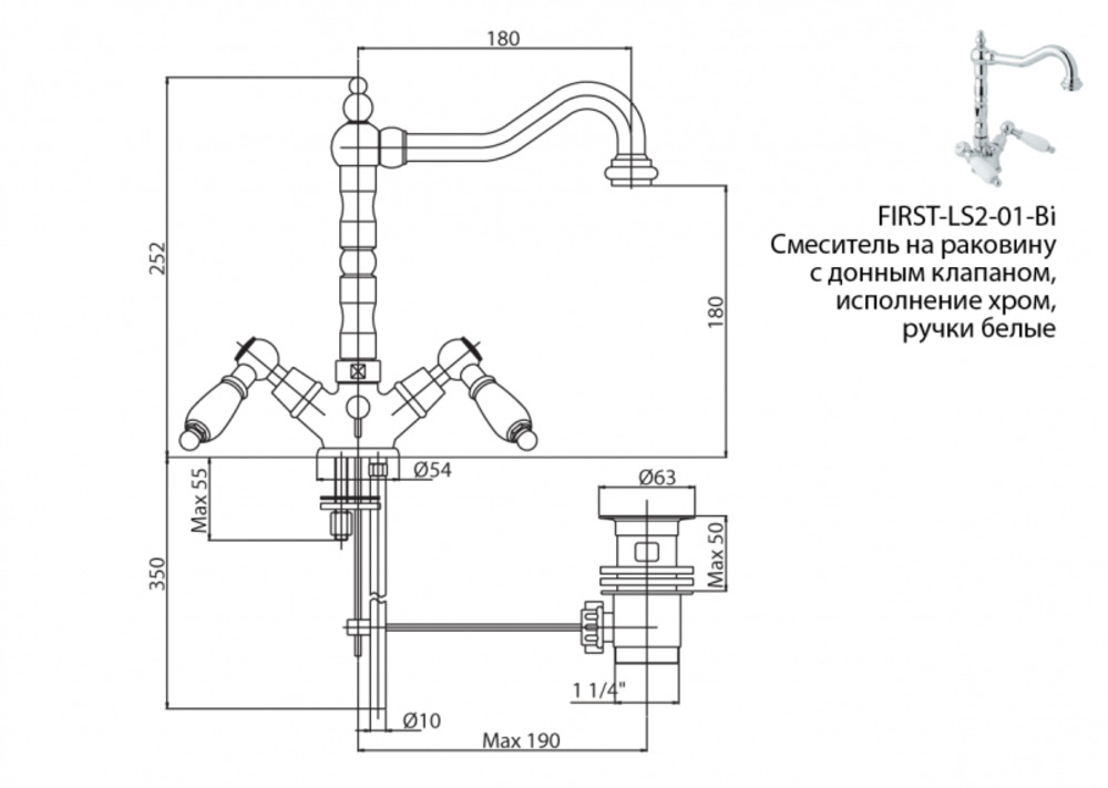 Смеситель Cezares FIRST-LS2-02-Nc для раковины, бронза, ручки орех