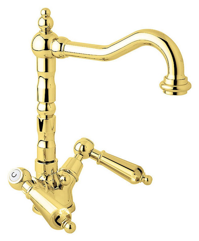 Смеситель Cezares FIRST-LS2-03/24-M для раковины, золото 24 карат, ручки металл