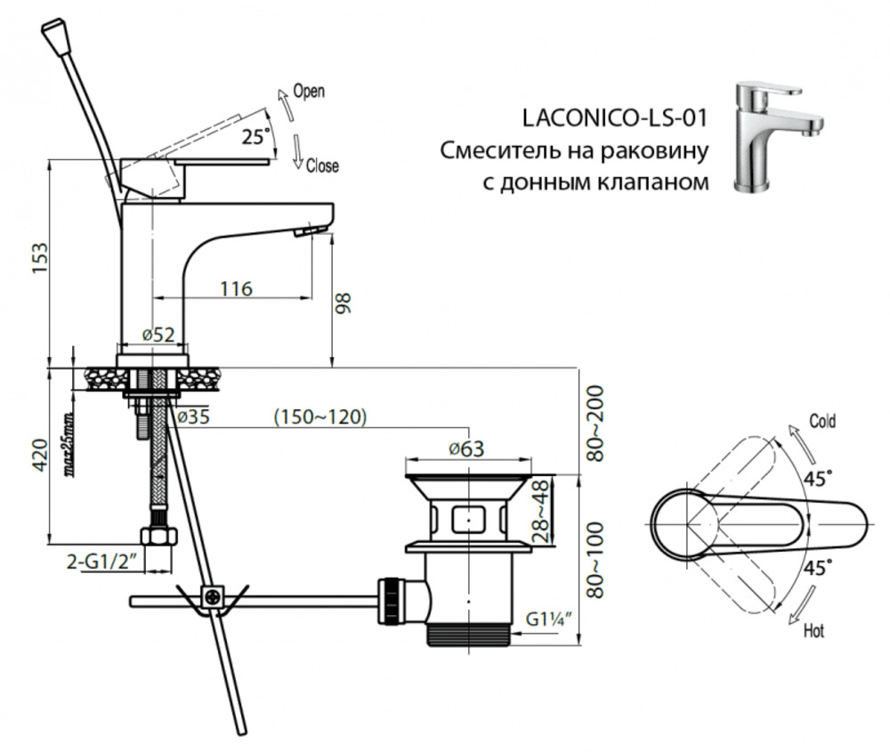 Смеситель Cezares Laconico LACONICO-LS-01 для раковины, хром