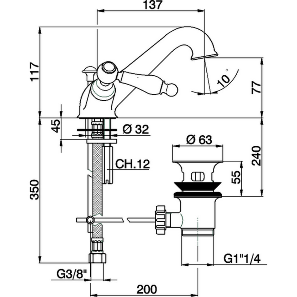 Смеситель Cisal Arcana Toscana TS00051027 для раковины с донным клапаном, бронза