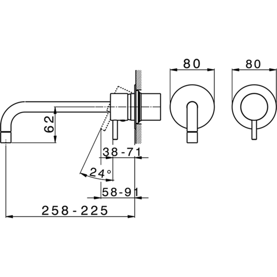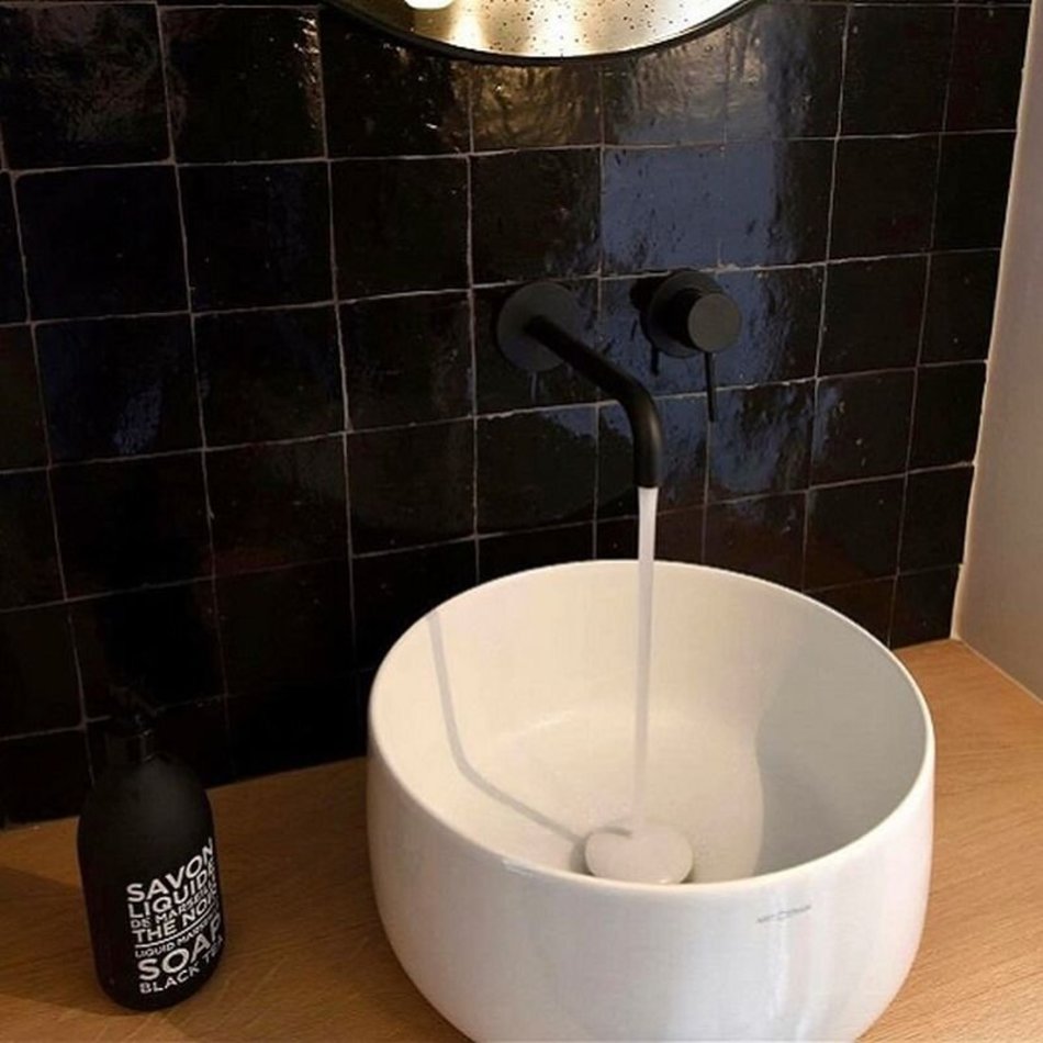 Смеситель Cisal Less New для раковины на 2 отверстия из стены,излив 258-225 мм, цвет черный матовый (LN00551740)
