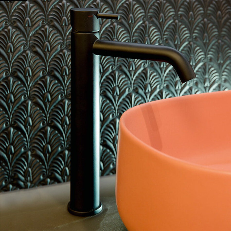 Смеситель Cisal Less New для раковины, высокий h287 мм, без донного клапана, цвет черный матовый, LN00354040