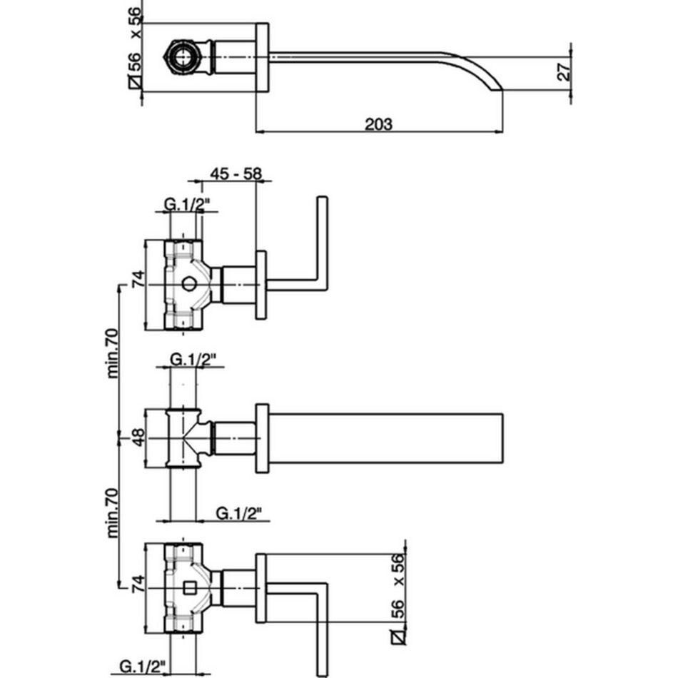 Смеситель Cisal Wave для раковины на 3 отверстия из стены, излив 203 мм, цвет хром (WA00751021)