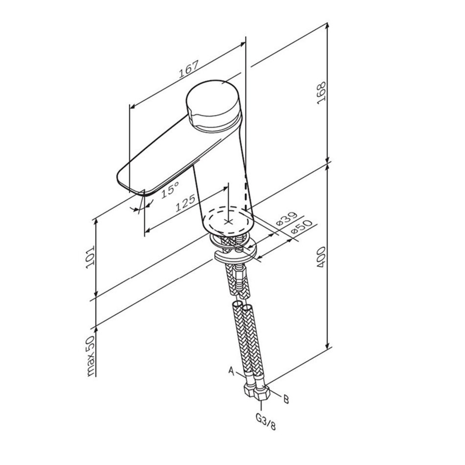 Идеальная геометрия, разработанная по стандарту SA (Smart Angle) – математические выверенное соотношение высоты смесителя, длины излива и наклона корпуса для удобного использования на умывальнике любого размера.
