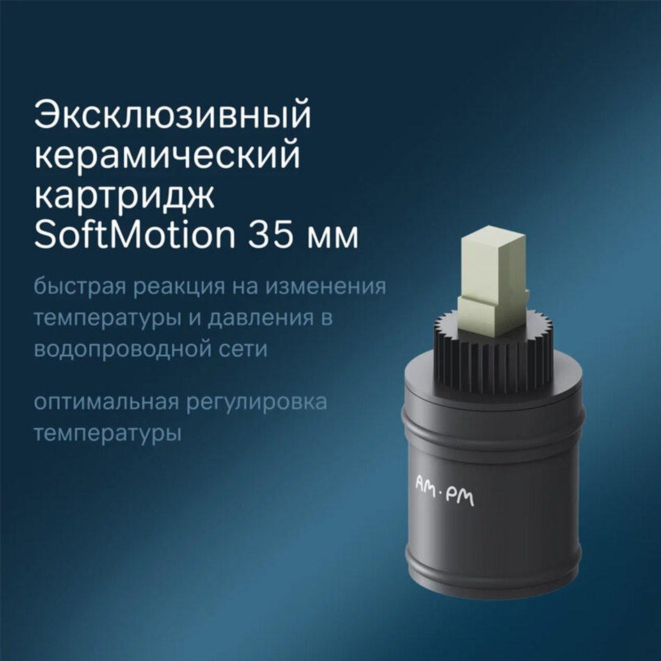 Смеситель X-Joy оборудован специально спроектированным для AM.PM керамическим картриджем SoftMotion 35 мм, который обеспечивает оптимальную регулировку температуры, а также позволяет выдерживать любые перепады давления.