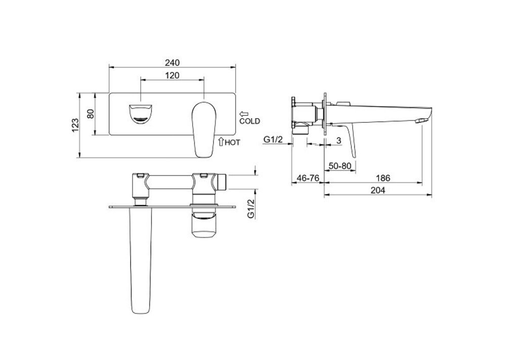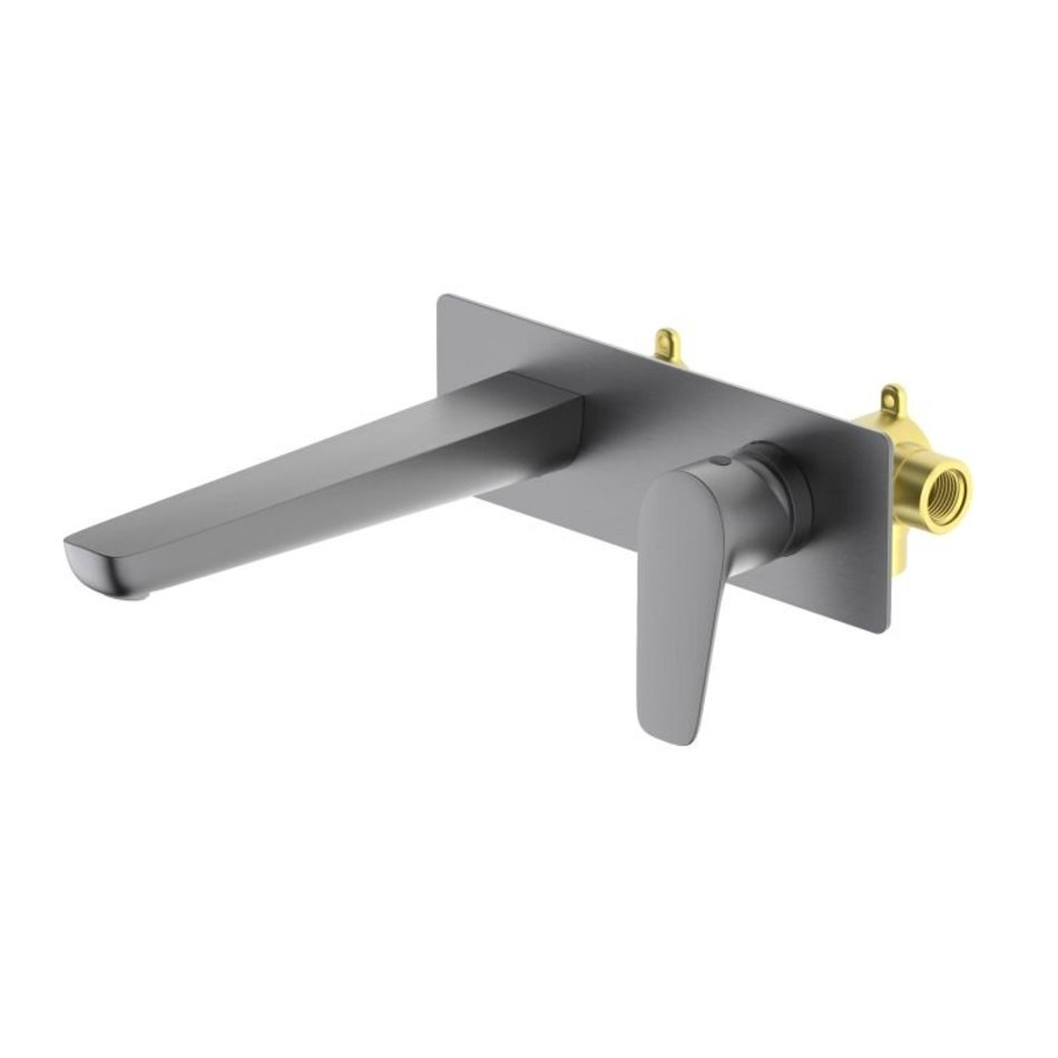 Комплектация: смеситель (внешняя и скрытая часть), декоративная накладка на стену из нержавеющей стали 3 мм, излив смесителя.