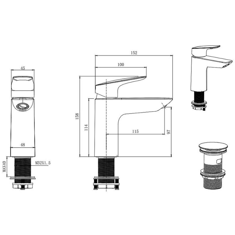 - донный клапан в цвет смесителя из нержавеющей стали марки SUS 304