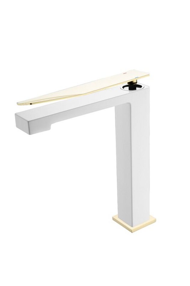 Смеситель выполнен в современном квадратном дизайне. Он изготовлен из латуни. Изделие отличается плоской широкой ручкой для удобной настройки напора и температуры воды. Для смешивания воды используется долговечный керамический картридж.