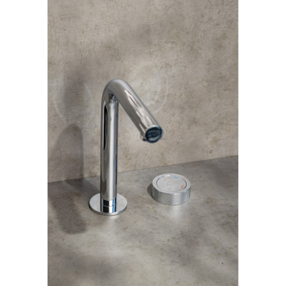 - Пуск воды осуществляется путем нажатия на кнопку, регулировка температуры - путем поворота рукоятки