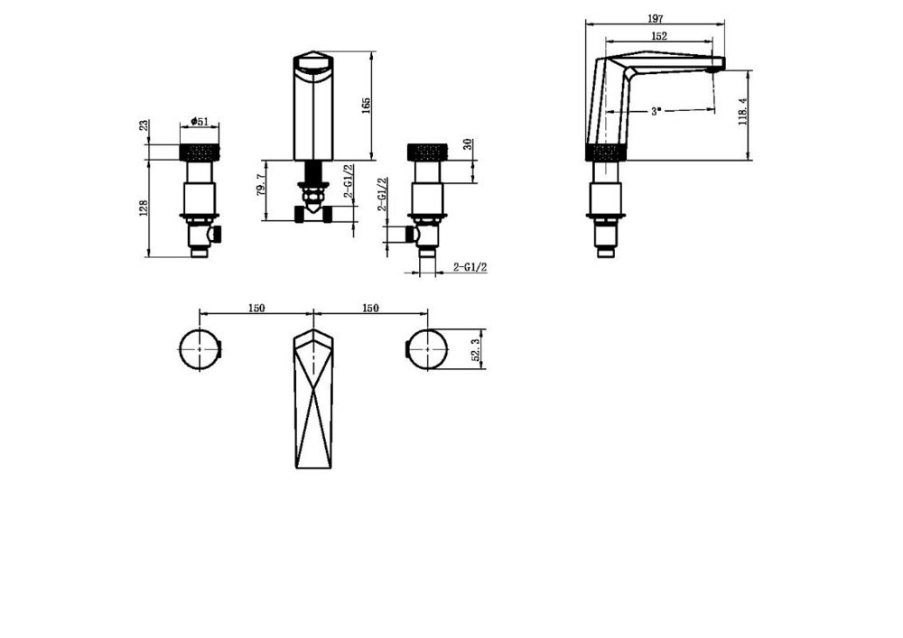- Монтаж: на раковину, 3 отверстия