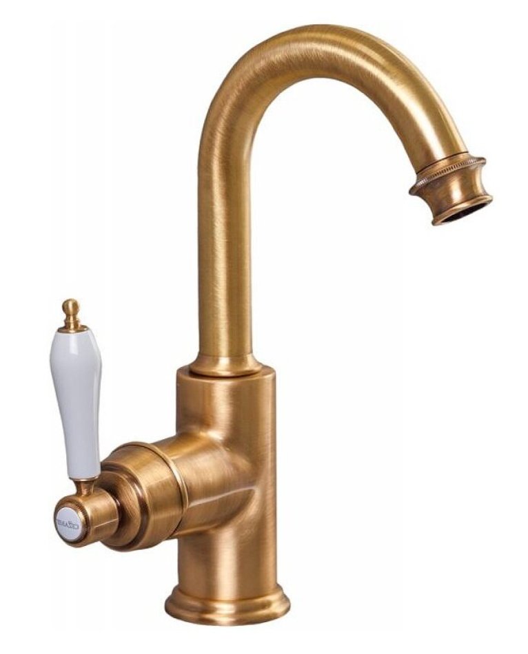 Смеситель для раковины Cezares Aphrodite-LS2-02-Bi, с донным клапаном, бронза, ручки белые