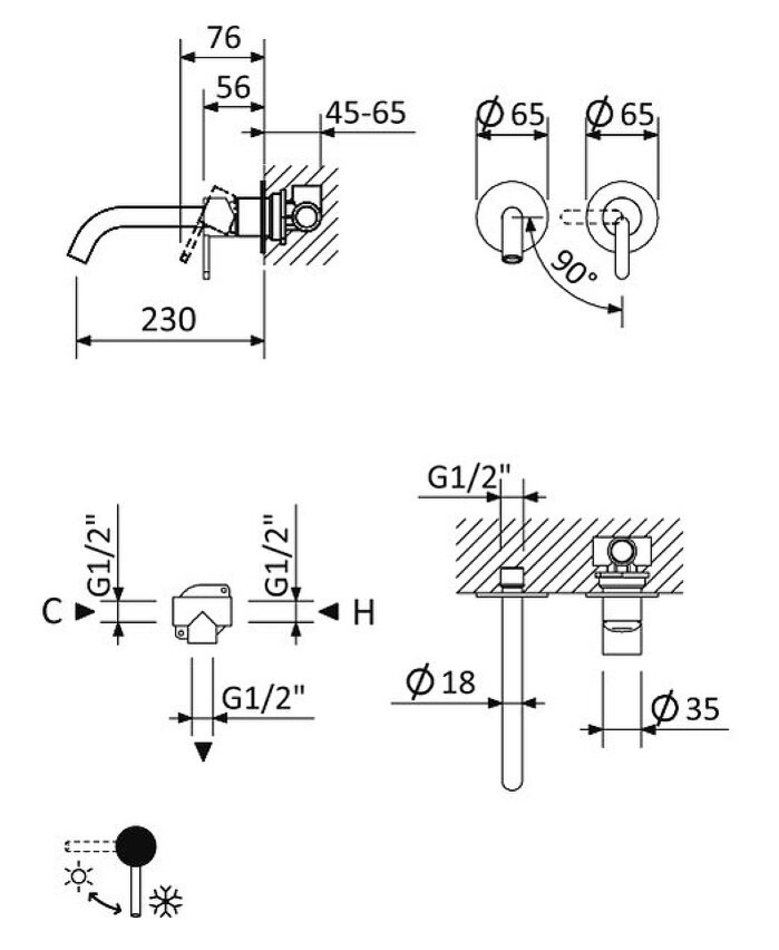 Смеситель для раковины Cezares Leaf-BLI2-L-NOP, черный матовый