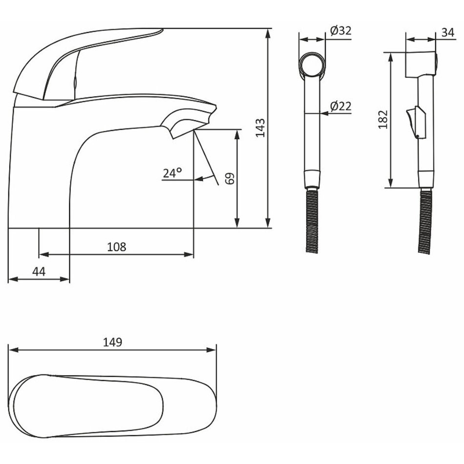 - Диаметр гигиенического душа: 32 мм.