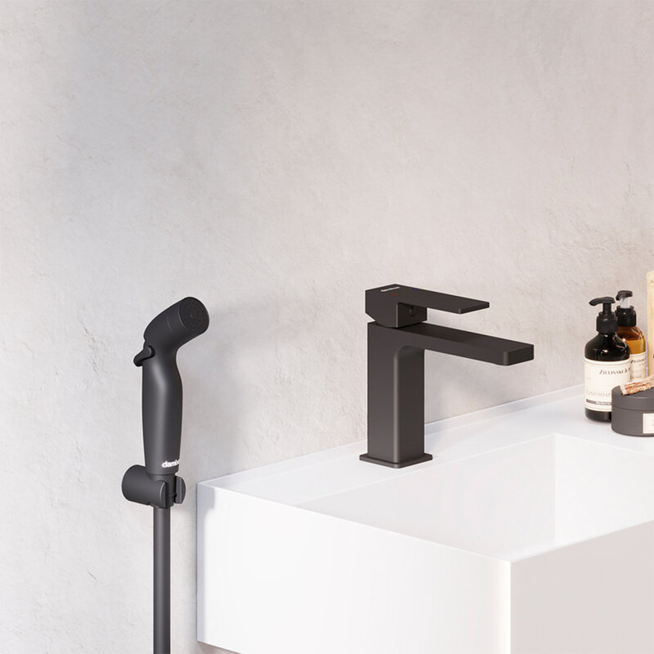 Смеситель для раковины Damixa Gala 530300300, с гигиеническим душем, цвет черный матовый