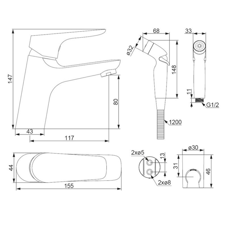 - смеситель для раковины с гигиеническим душем