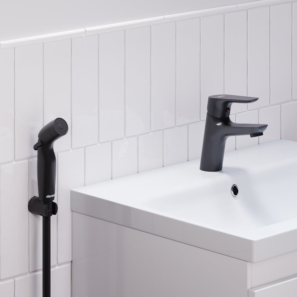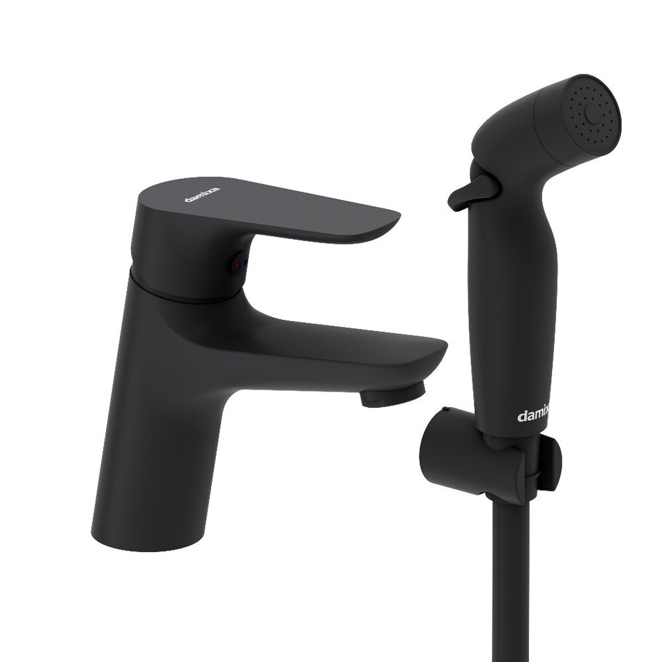 Смеситель для раковины Damixa Jupiter с гигиеническим душем, черный матовый, 770300300