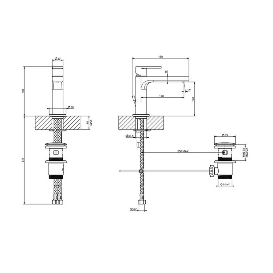 Смеситель для раковины Gessi Via Manzoni, 38601/299, с донным клапаном, цвет черный матовый