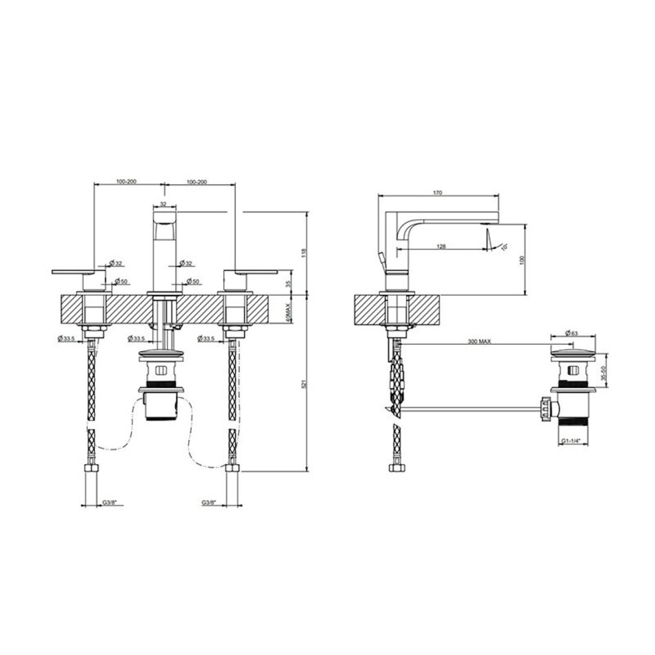 Смеситель для раковины Gessi Via Manzoni, 38612/299, с донным клапаном, цвет черный матовый
