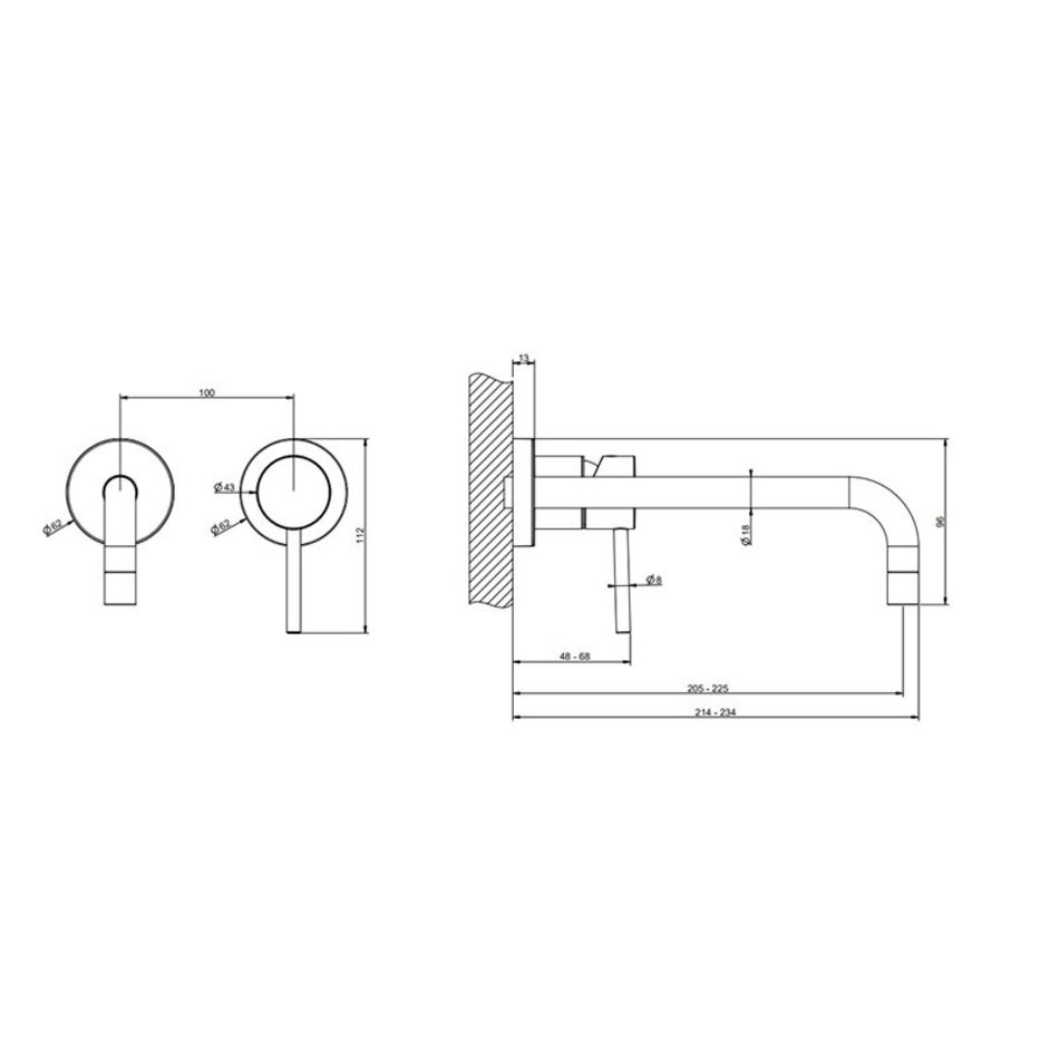 Смеситель для раковины Gessi Via Tortona, 44825/299, с длинным изливом, без донного клапана, цвет черный матовый