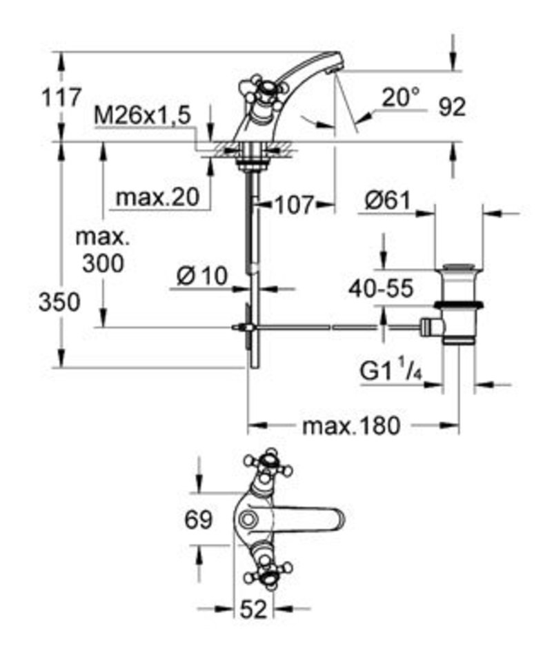 - Длина излива