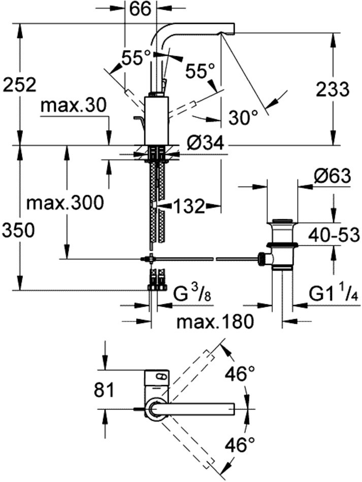 Смеситель для раковины Grohe Essence, 32628000, д/к, высокий