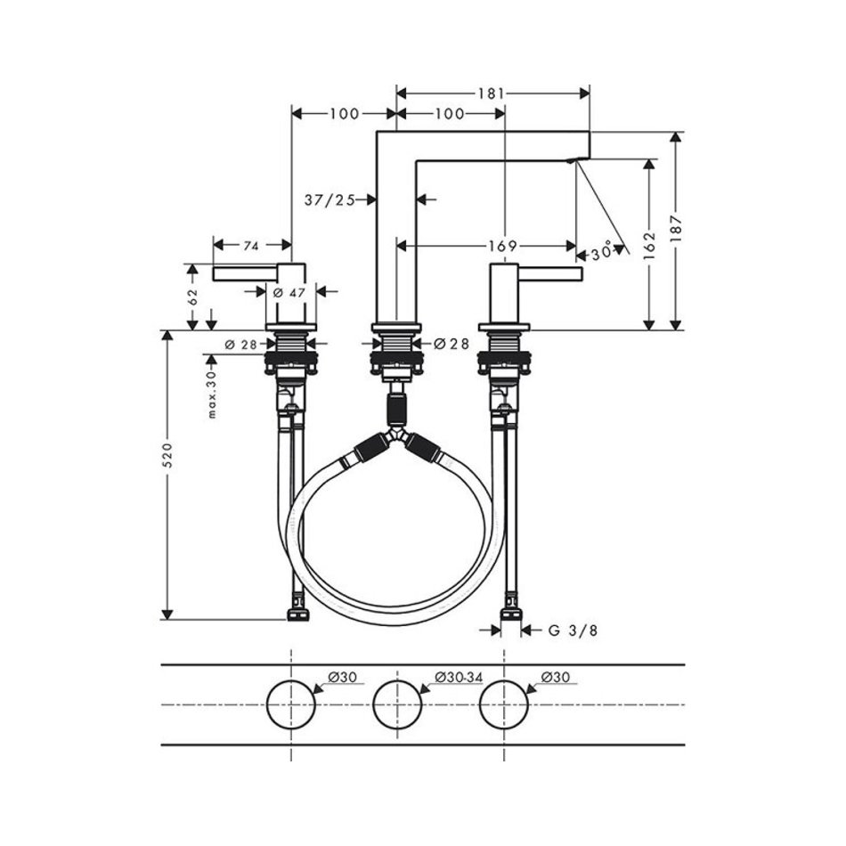 - состоит из: смеситель для раковины на 3 отверстия, сливной клапан
