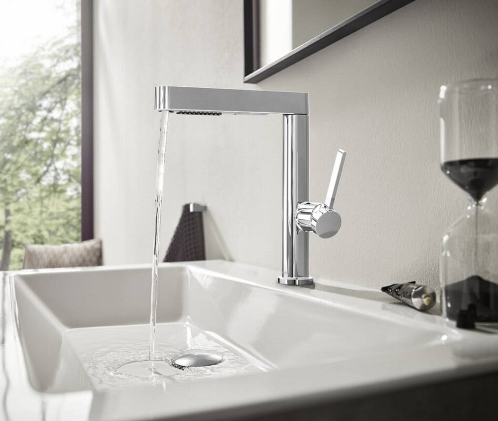 - Pull Out: вытяжной излив смесителя, вытяжной душ позволяет значительно расширить радиус действий