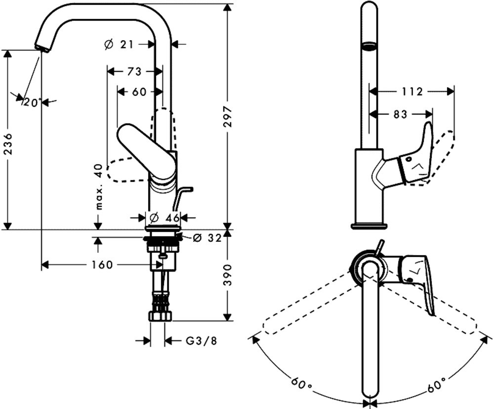 Смеситель для раковины Hansgrohe Focus Е2, хром, 31609000