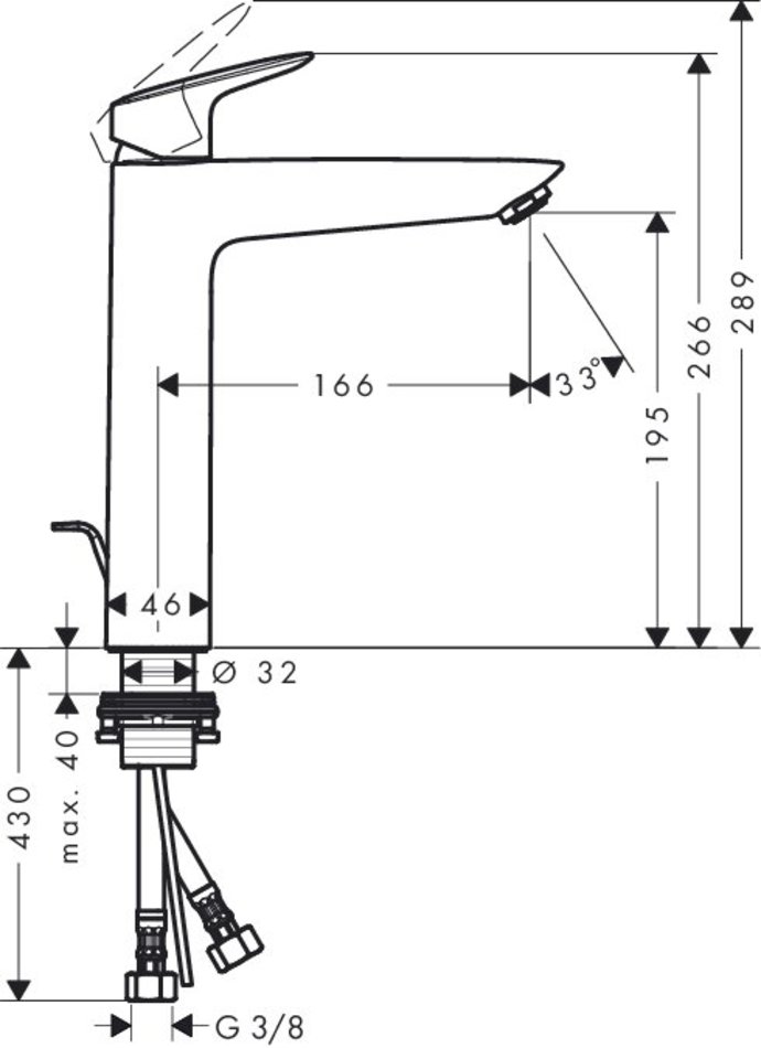• состоит из: однорычажный смеситель для раковины, слив/перелив