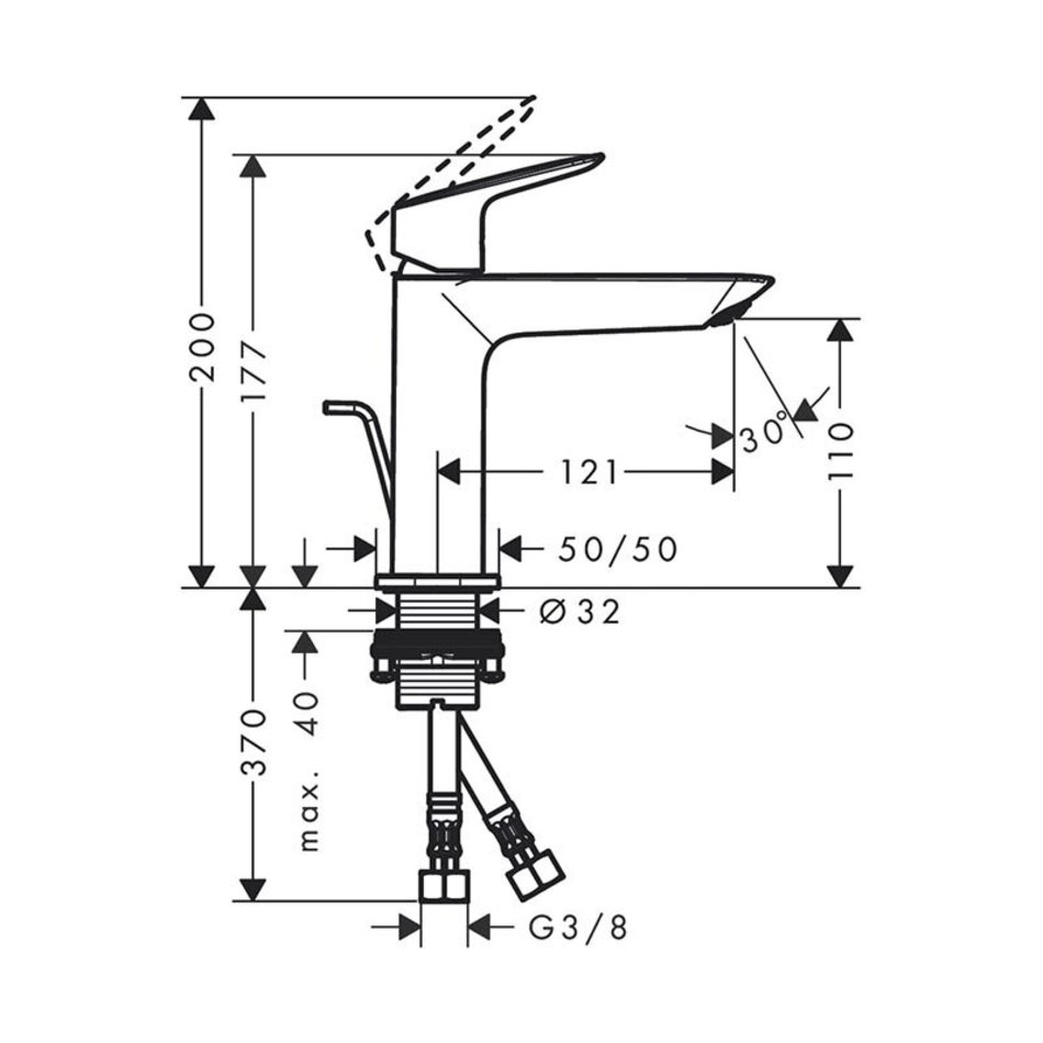 Смеситель для раковины Hansgrohe Logis, 110 Fine CoolStart, с донным клапаном, черный матовый, 71254670