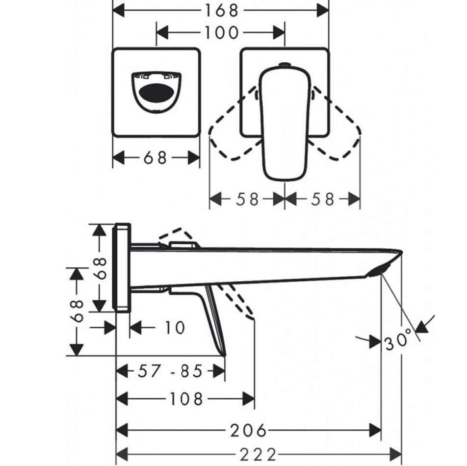 - состоит из: смеситель для раковины, однорычажный , скрытого монтажа, настенный, слив/перелив