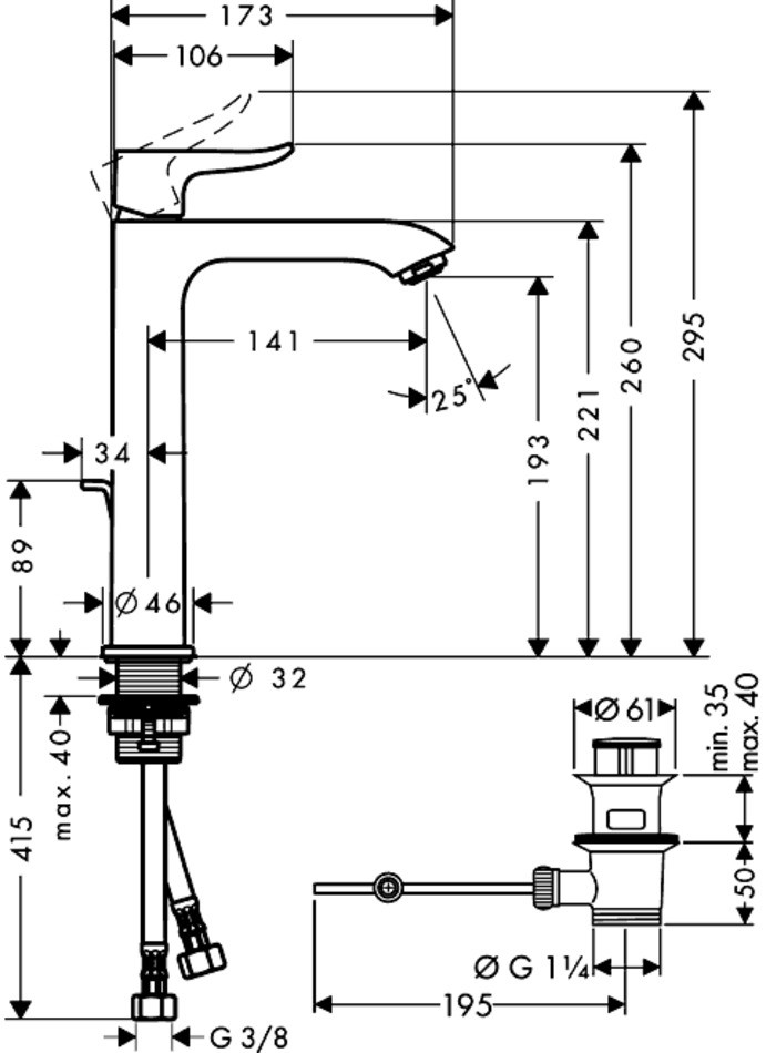Смеситель для раковины Hansgrohe Metris 31183000, хром, д/к, высокий