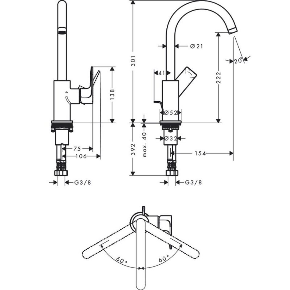 Состоит из: однорычажный смеситель для раковины, слив/перелив