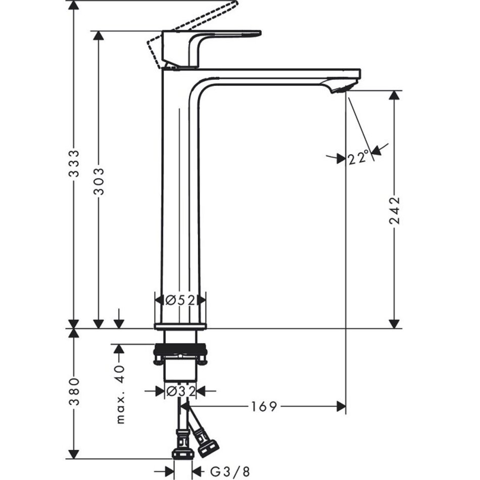 Смеситель для раковины Hansgrohe Rebris E, без донного клапана, хром глянцевый, 72583000