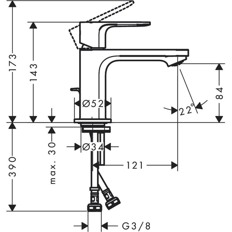 Смеситель для раковины Hansgrohe Rebris S, с донным клапаном, хром глянцевый, 72584000