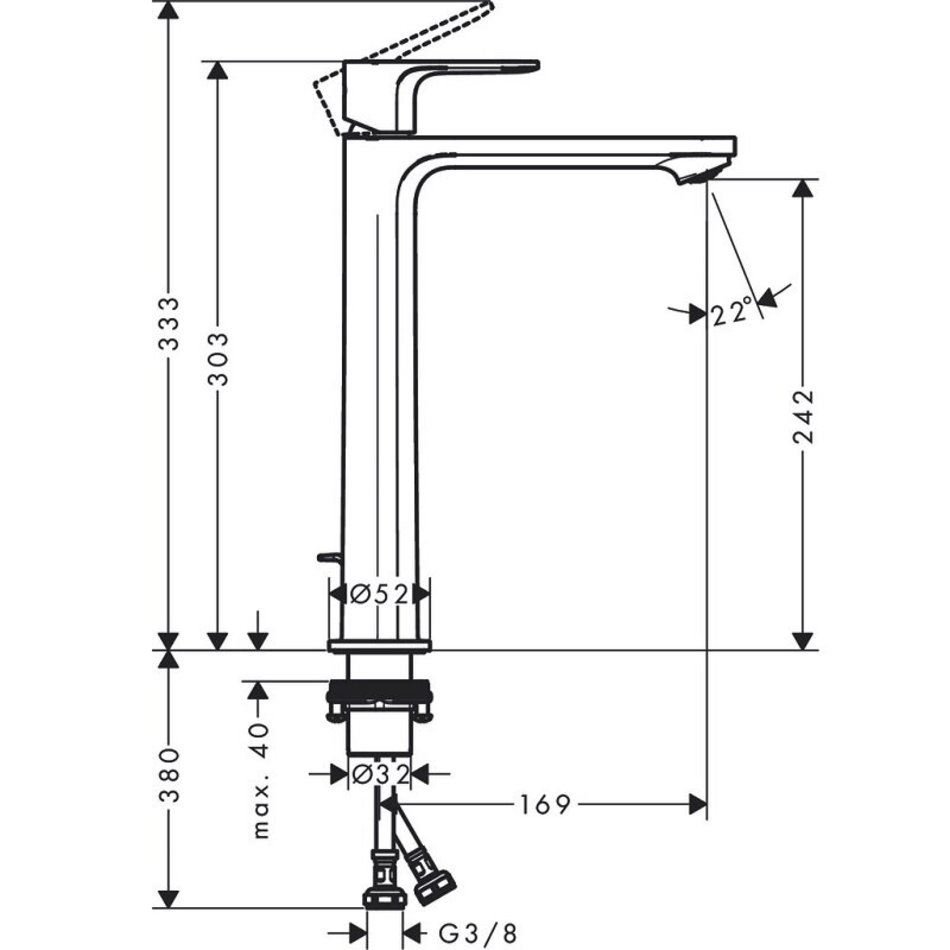 Смеситель для раковины Hansgrohe Rebris S, с донным клапаном, хром глянцевый, 72590000