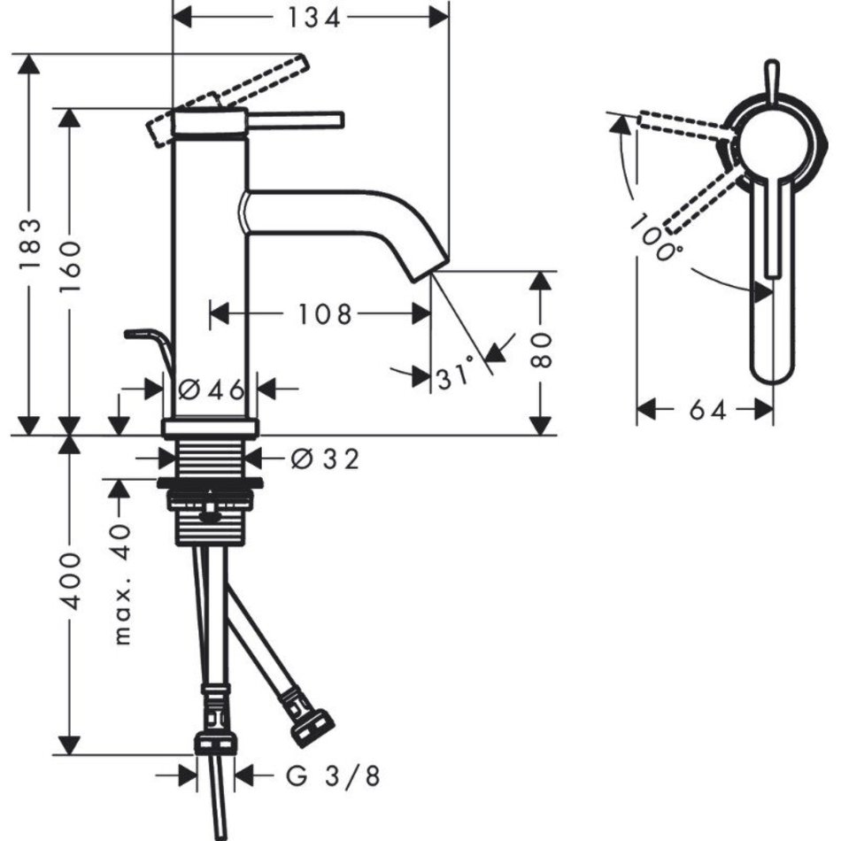 Смеситель для раковины Hansgrohe Tecturis S, с донным клапаном, цвет шлифованная бронза, 73302140