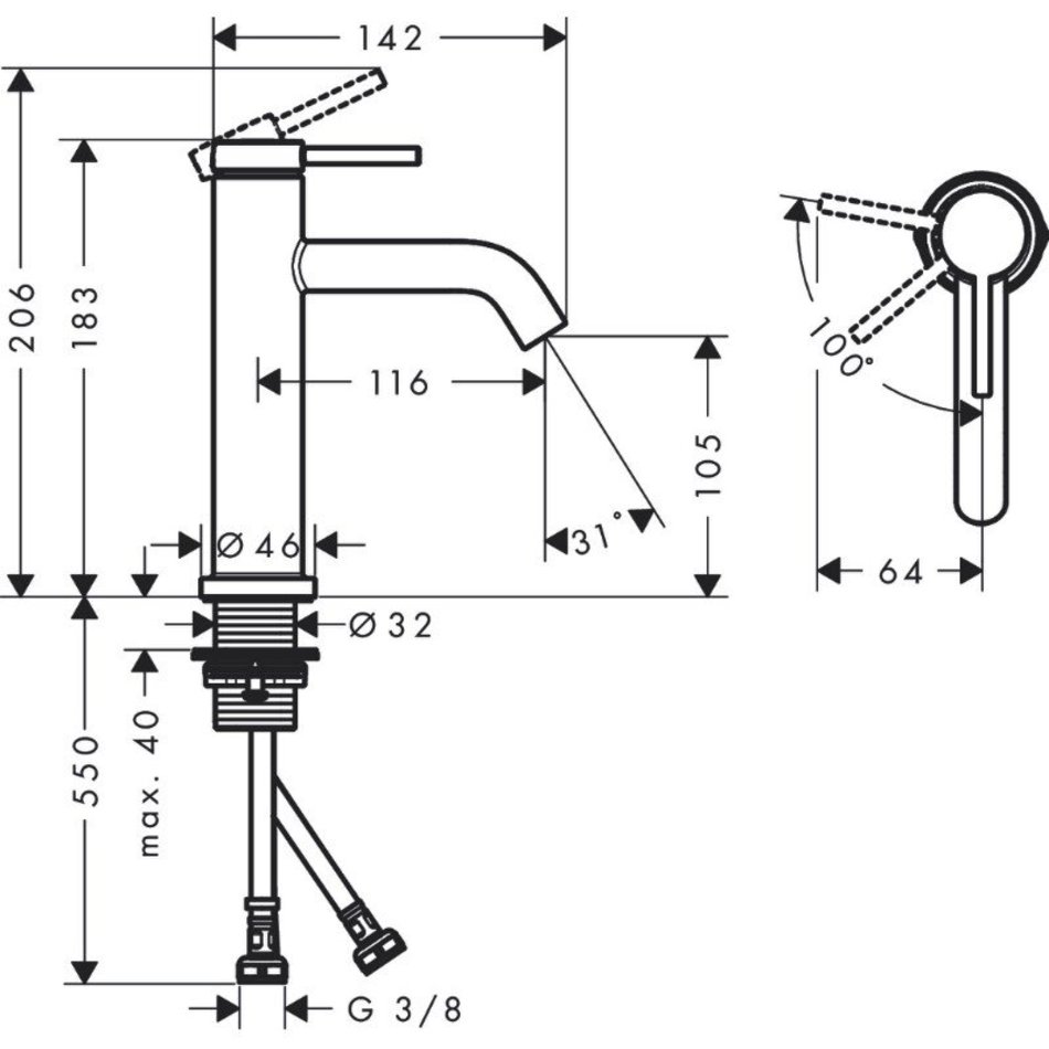 · тип соединения: соединения G ⅜ · холодная вода в среднем положении