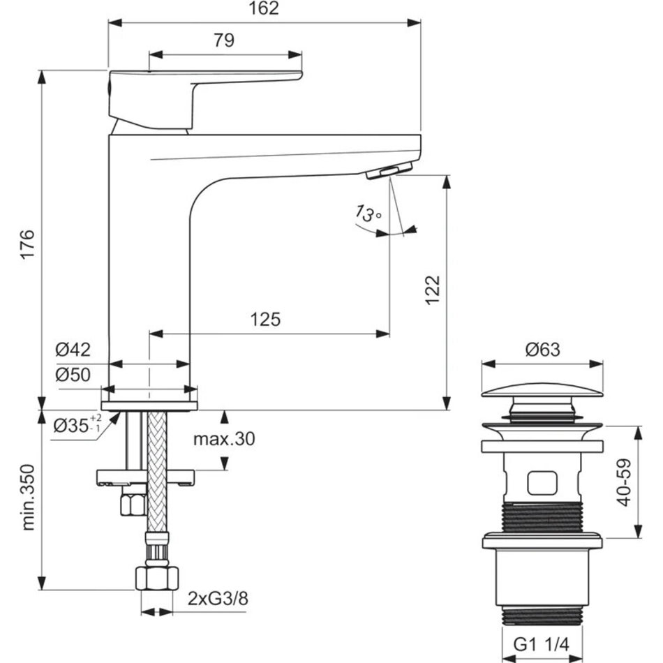 - В комплекте со смесителем поставляется донный клапан (входит в стоимость)