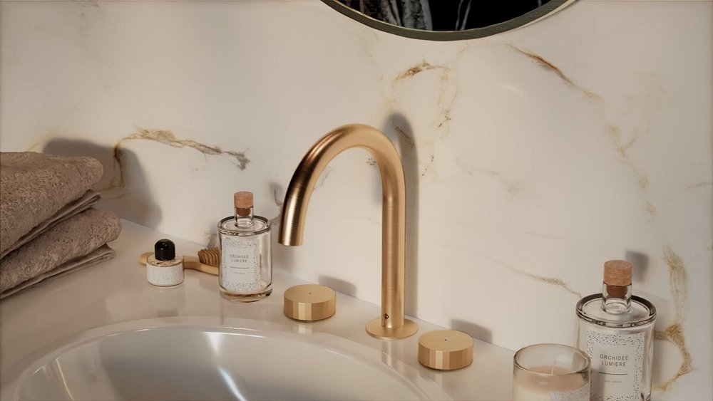 - Логотип Jacob Delafon, расположенный сверху, придает смесителю еще более роскошный вид