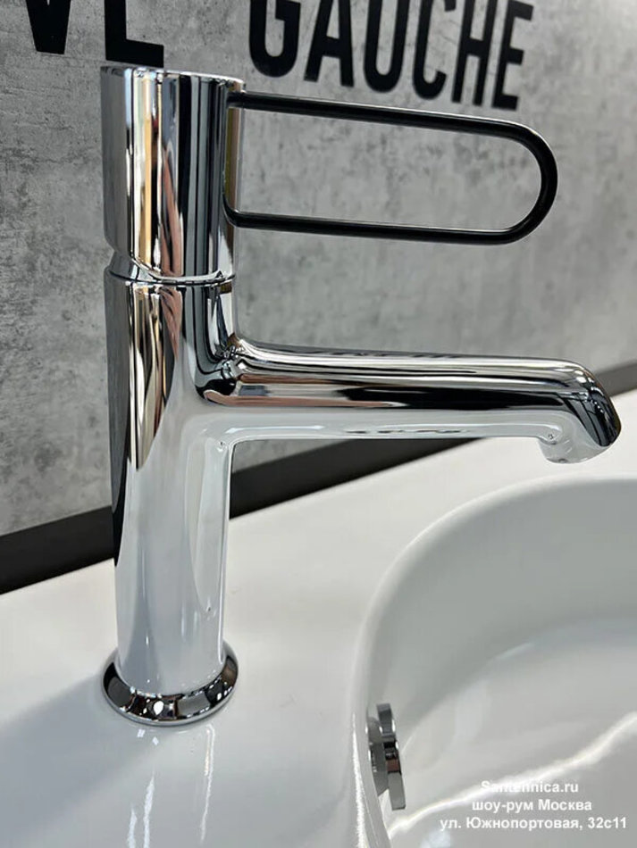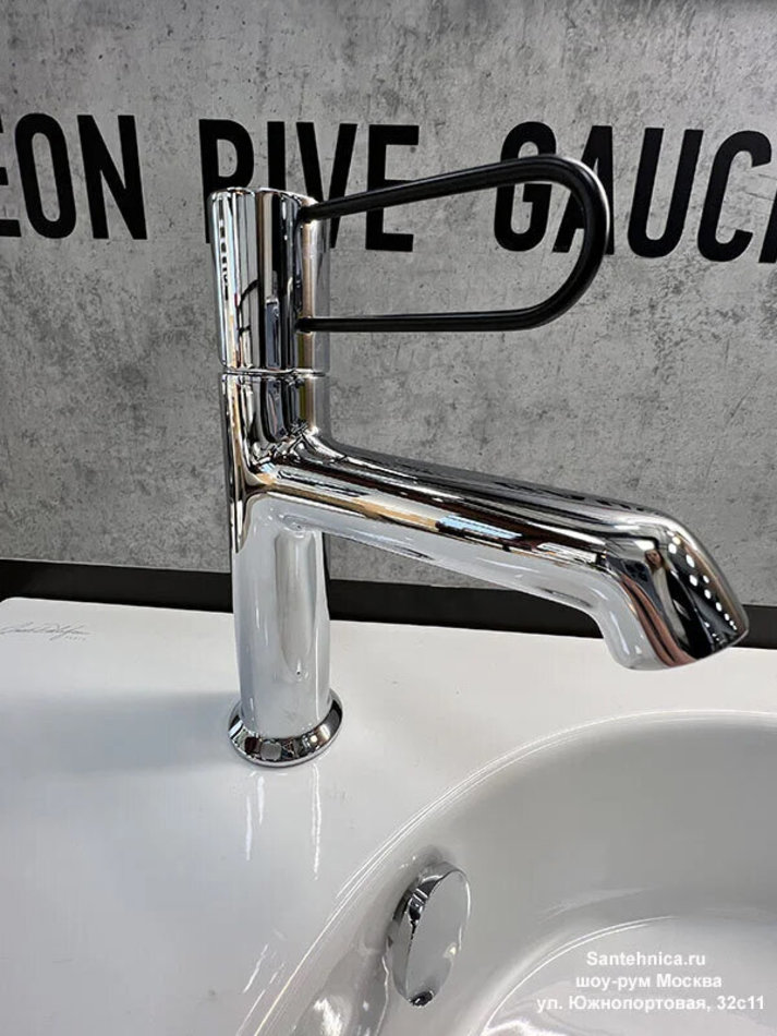 Смеситель для раковины Jacob Delafon Odeon Rive Gauche E21028-BL-CP с донным клапаном, хром, ручка черная (выставочный образец, отсутствует упаковка)