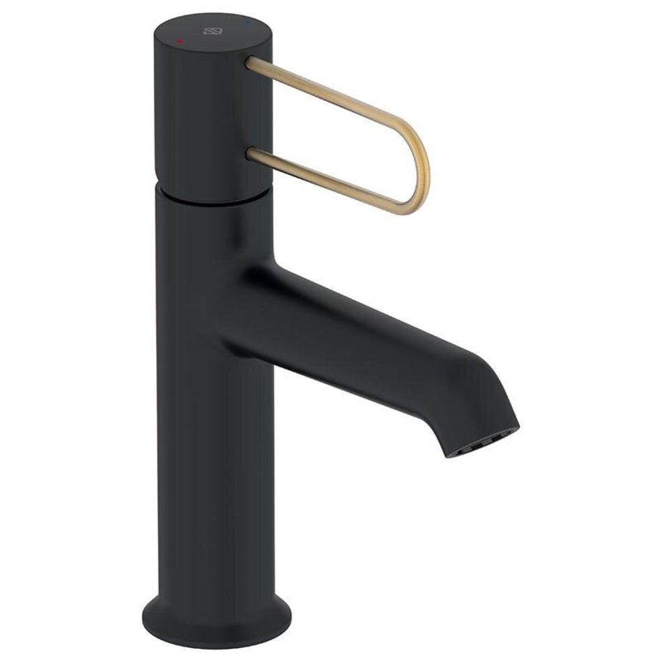 Смеситель для раковины Jacob Delafon Odeon Rive Gauche E21029-GLD-BL, без донного клапана, корпус черный, ручка золото