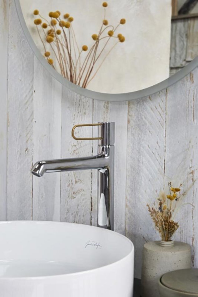 Смеситель для раковины Jacob Delafon Odeon Rive Gauche E21030-GLD-CP, высокий, с донным клапаном, хром, ручка золото