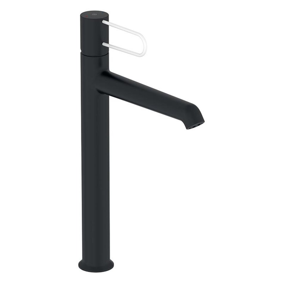 Смеситель для раковины Jacob Delafon Odeon Rive Gauche E21031-00-BL, высокий, без донного клапана, корпус черный, ручка белая